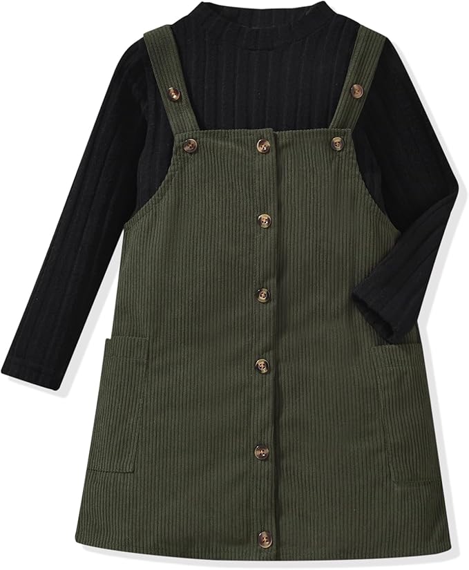 Toddler Little Girl Corduroy Button Down Overall Dress Set 2-7Y