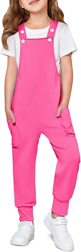Girls Overalls Kids Casual Sleeveless Jumpsuits Harem Pants Rompers with Pockets 5-14 Years