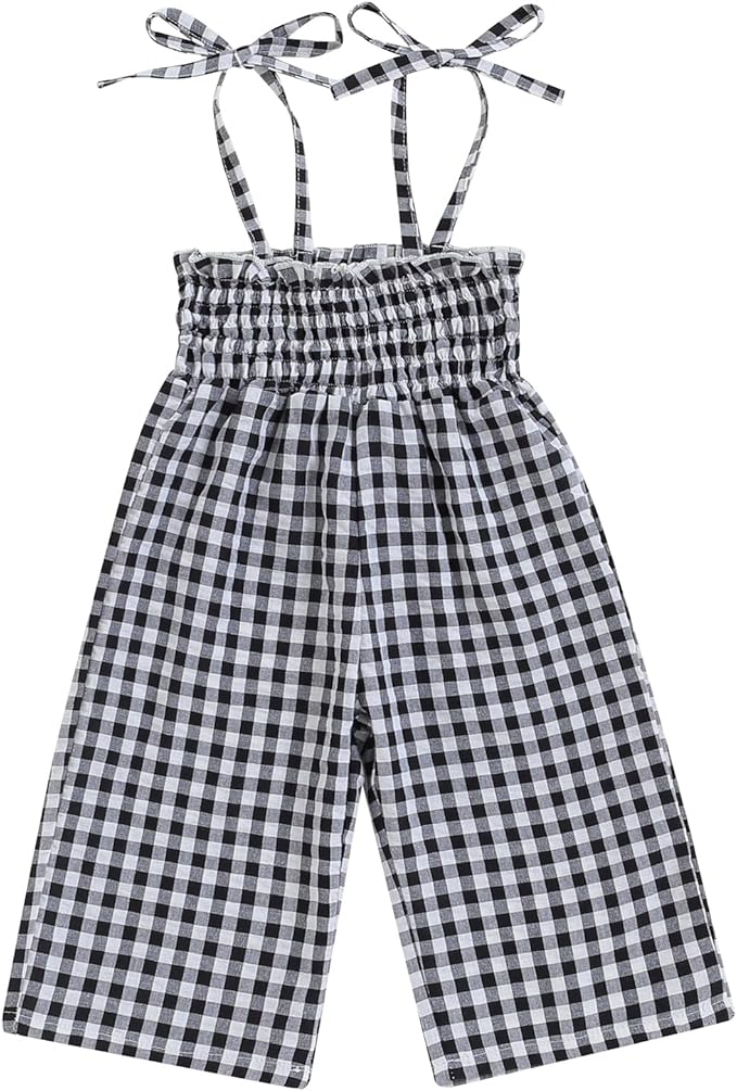 Baby Flare Jumpsuit Plaid Print Tie Shoulder Wide Leg Overalls Toddler Girl Ruffle Romper Sleeveless Strap Playsuit