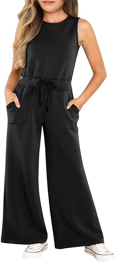Girls Casual Jumpsuit Kids Fashion Sleeveless Elastic Waist Wide Leg Pants Rompers One Piece Outfits