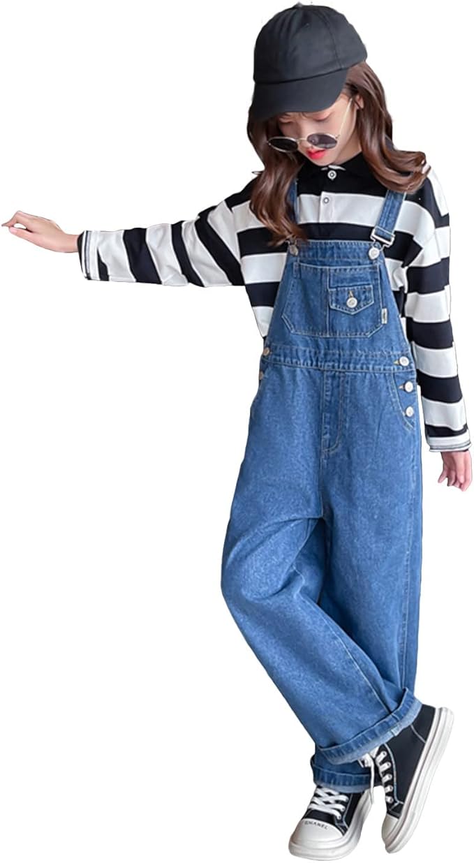 Girls Boys Overalls Adjustable Strap Loose Fit Jumpsuits Casual Bib Overalls 5-14 Years