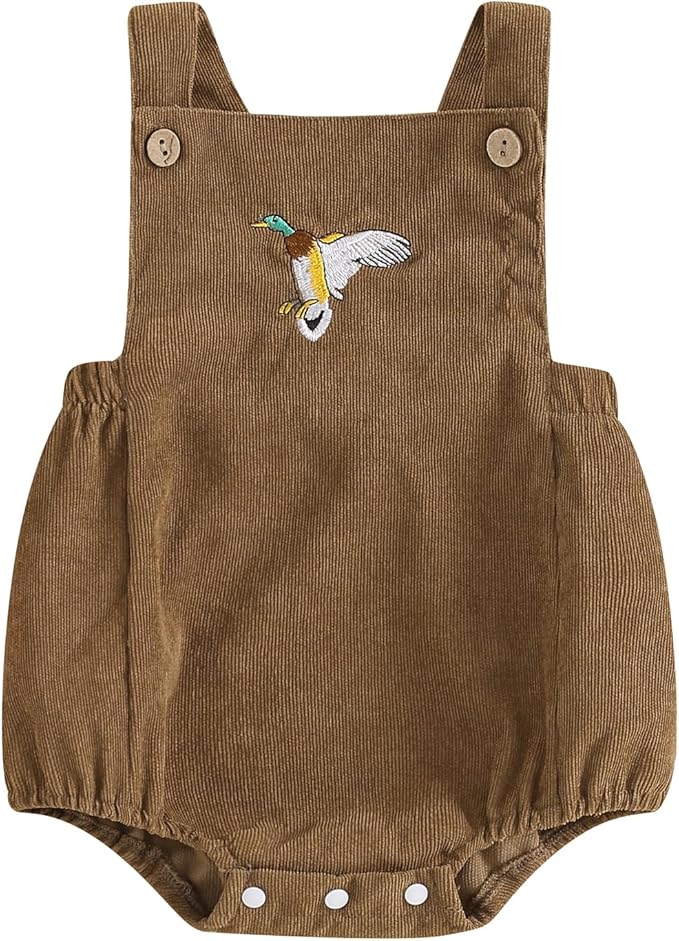 Infant Baby Boy Girl Mallard Duck Corduroy Overalls Romper Embroidery Duck Sleeveless Bodysuit Hunting Baby Clothes