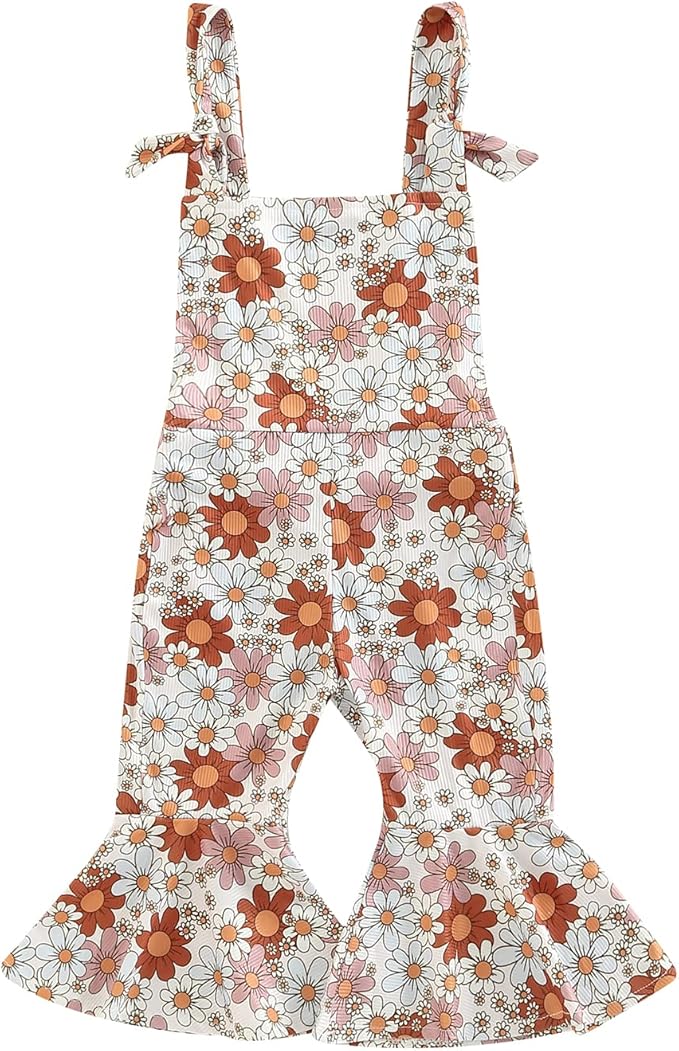 Infant Toddler Baby Girl Romper Jumpsuit Sleeveless Halter Floral One Piece Outfit Bell Bottom Overalls Summer Clothes