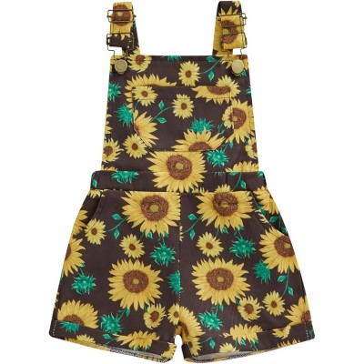 Toddler Baby Girl Sunflower Print Overalls Shorts with Pocket Suspender Trousers Cute Summer Clothing Outfit