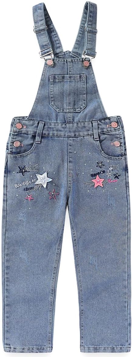 5-10years Little Big Girls Star Embroidery Blue Denim Overalls