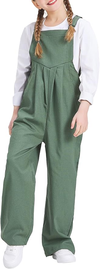 Girls Overalls Kids Casual Sleeveless Jumpsuits Harem Pants Rompers with Pockets 5-14 Years