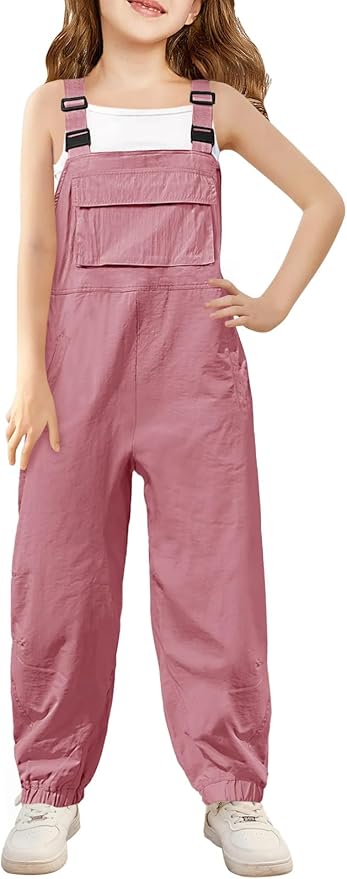 Girls Bib Overalls Summer Outfits Adjustable Strap Long Pants Casual Rompers Jumpsuits with Pockets 5-14 Years