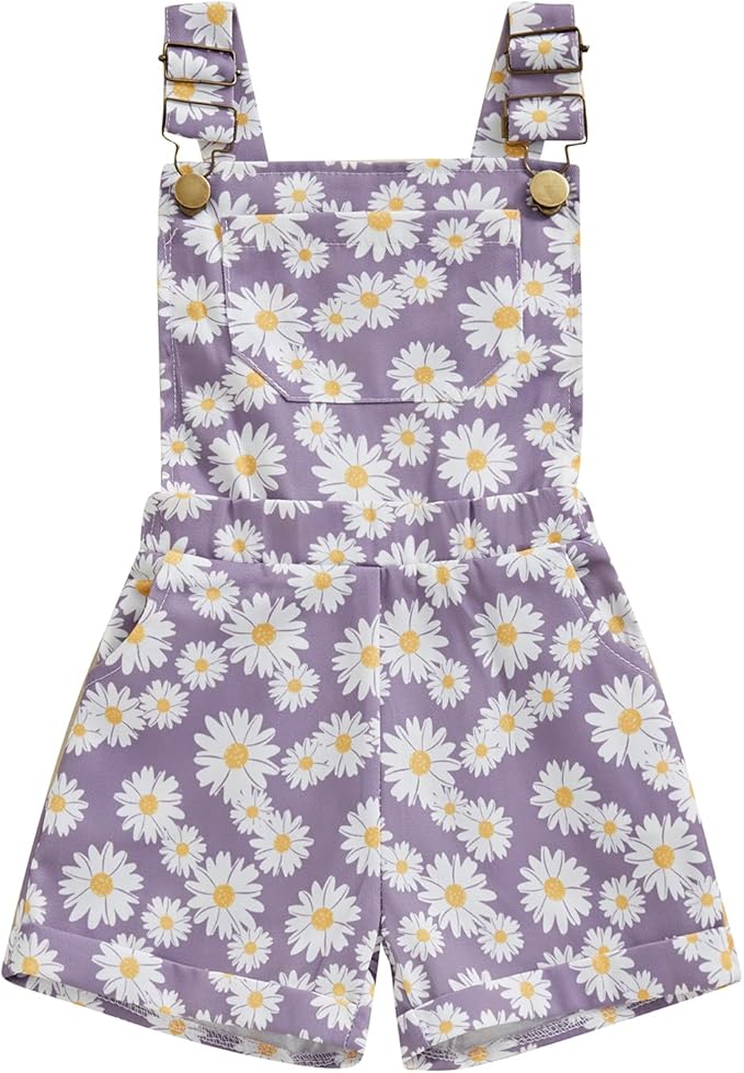 Toddler Baby Girl Overalls Daisy Floral Print Romper Suspender Shorts Jumpsuit Cute Summer Outfits Clothes